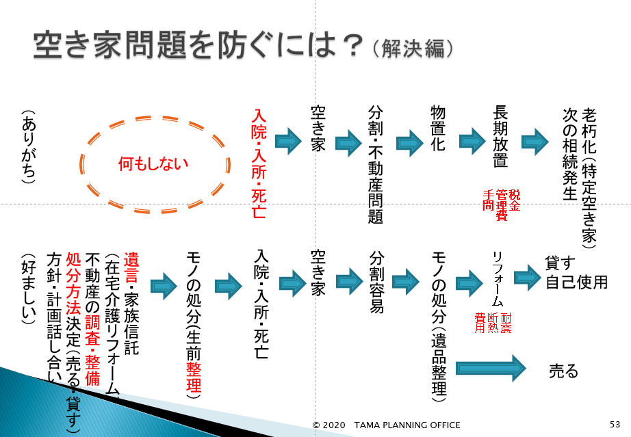 空き家にならないため、早く処置できるためには、認知症、病気、介護、相続になる前に、十分な準備・対策が必要です。